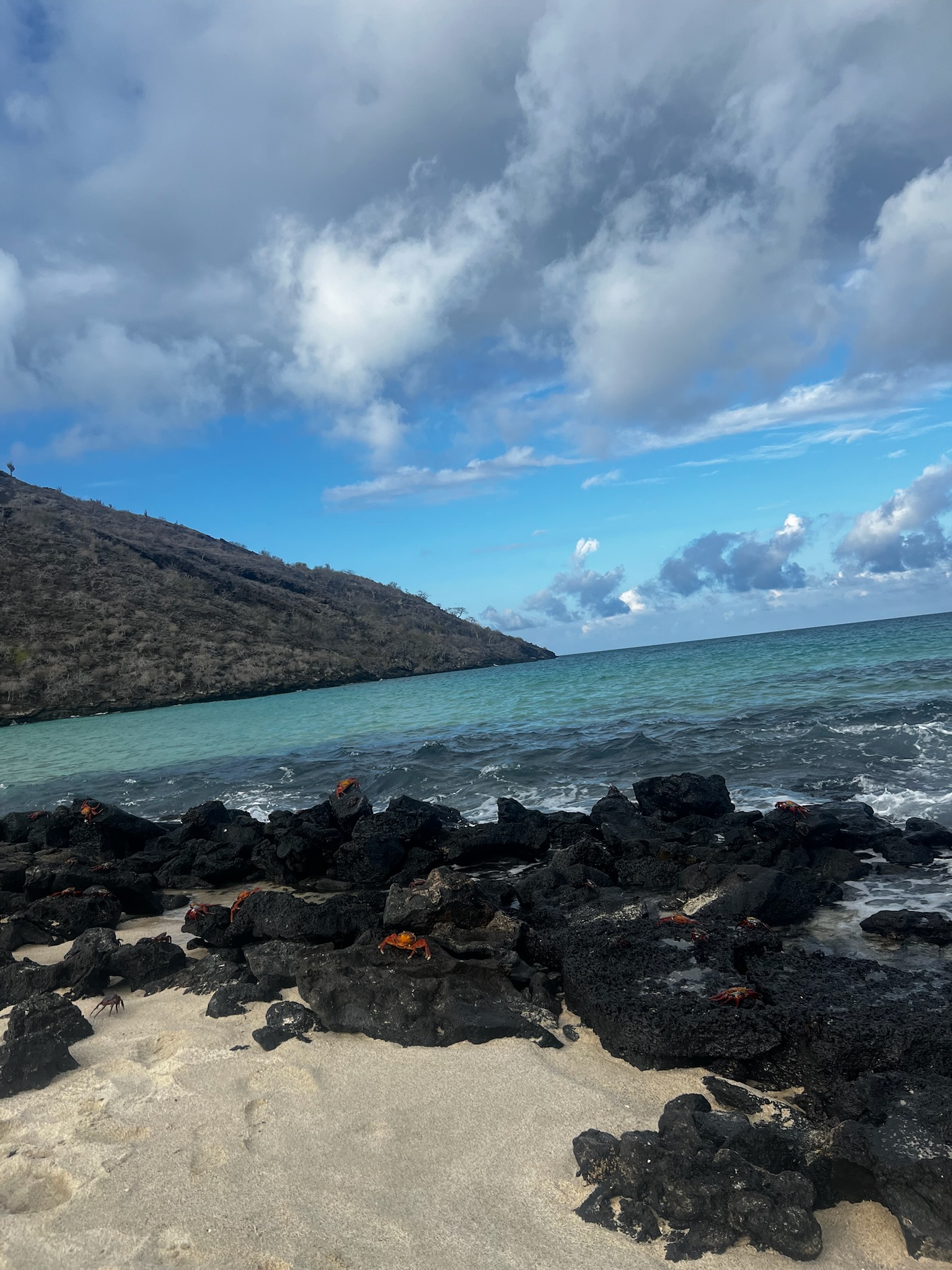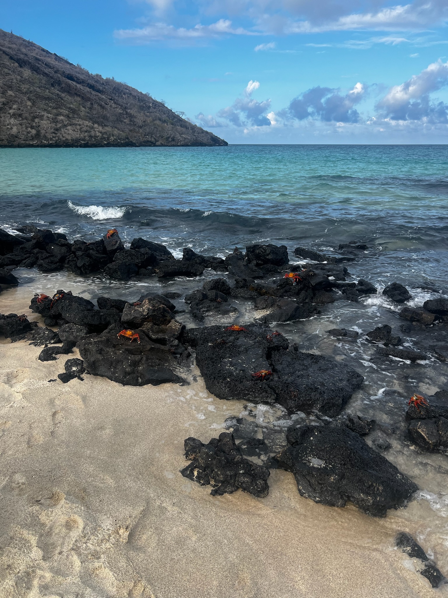 Red Sand Beach, located on the remarkable Rábida Island in the Galápagos, is famed for its striking red-colored sand, a result of the high iron content in the volcanic material. This vibrant beach is not just a visual spectacle; it’s also a wildlife sanctuary. The contrast of the red sand against the turquoise sea creates a stunning natural palette that enchants visitors. Home to a colony of sea lions, marine iguanas, and an array of bird species, Red Sand Beach offers exceptional opportunities for wildlife viewing and photography. The shallow waters around the beach are ideal for snorkeling, allowing visitors to explore the rich marine life beneath the waves. Rábida’s Red Sand Beach exemplifies the unique beauty and ecological diversity of the Galápagos Islands, making it a must-visit destination for nature lovers and adventure seekers alike.